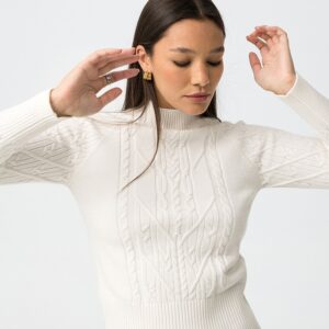 Los jerséis de cuello alto son otra opción elegante para el invierno, con estilos ajustados o oversized. Los jerséis de punto grueso son especialmente populares estos años con diseños muy llamativos y diferentes patrones. Las opciones de colores más populares para otoño-invierno incluyen negro, gris, beige y marrón, todos ellos muy elegantes y combinables.
