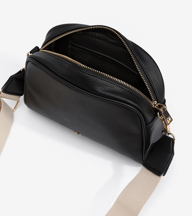 Bolsa bandolera efecto piel con cierre de cremallera superior.