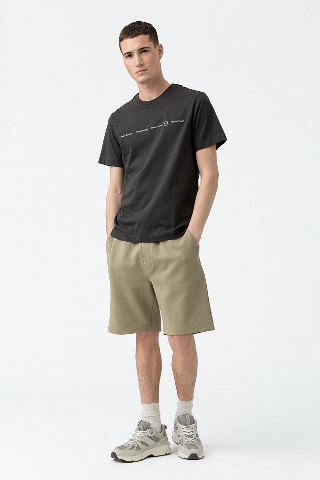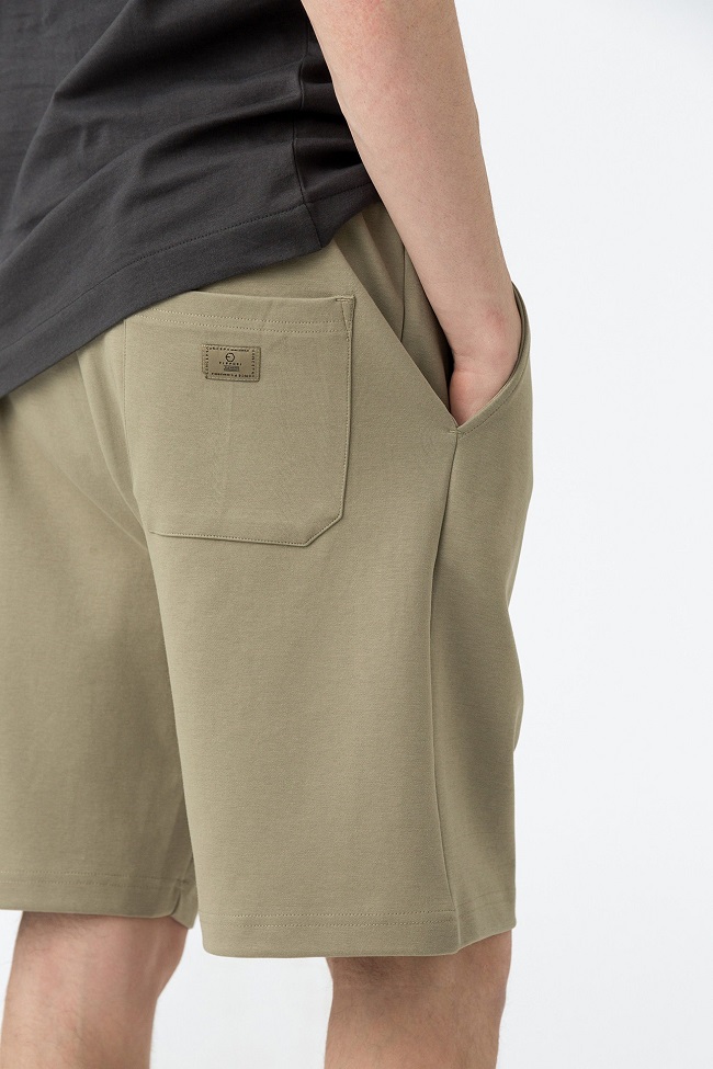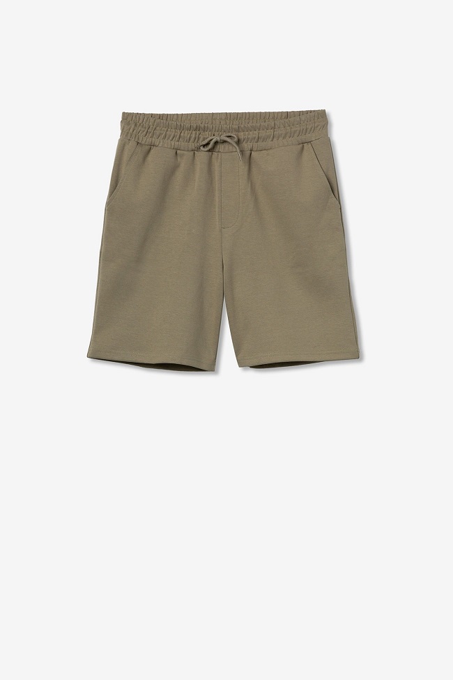 Short de rizo de talle medio, con cinturilla elástica y cordón ajustable.