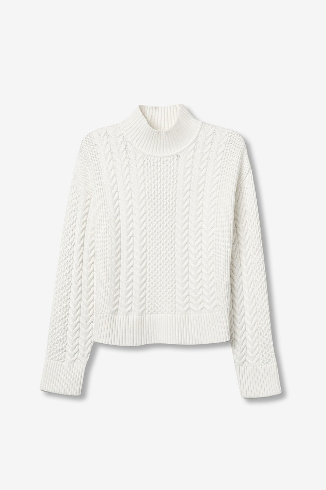 Jersey regular fit de punto trenzado, cuello alto, manga larga y acabados de canalé.