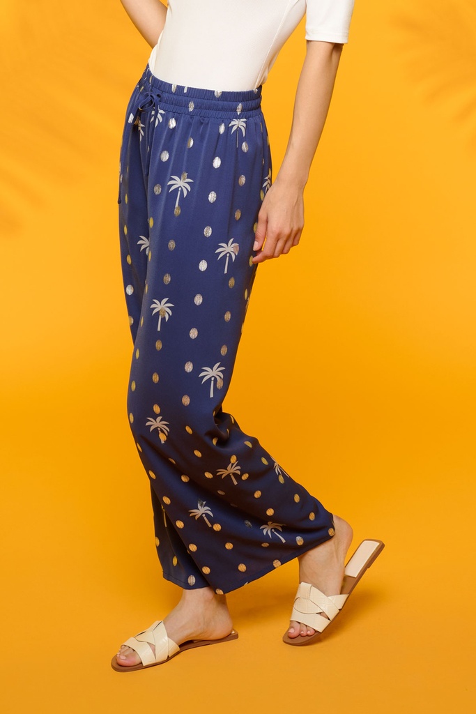 Pantalón palazzo con cintura elástica ajustable con lazo.