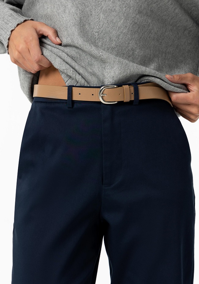 Pantalón de tiro medio con aplicación de cinturón efecto piel.