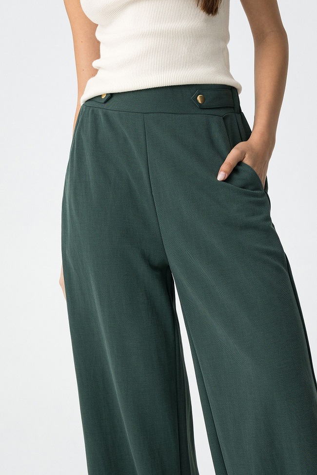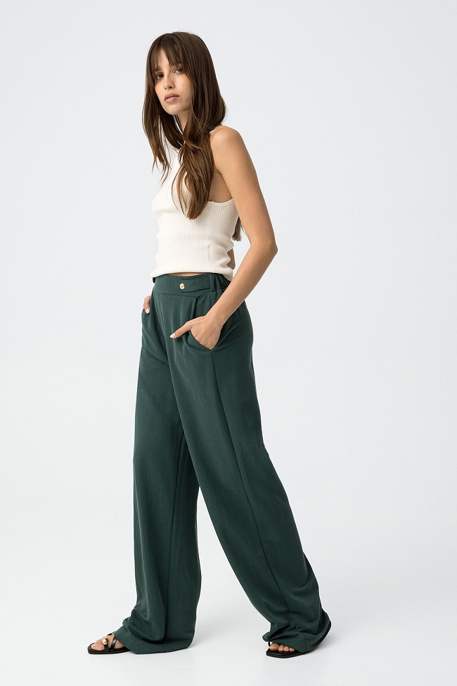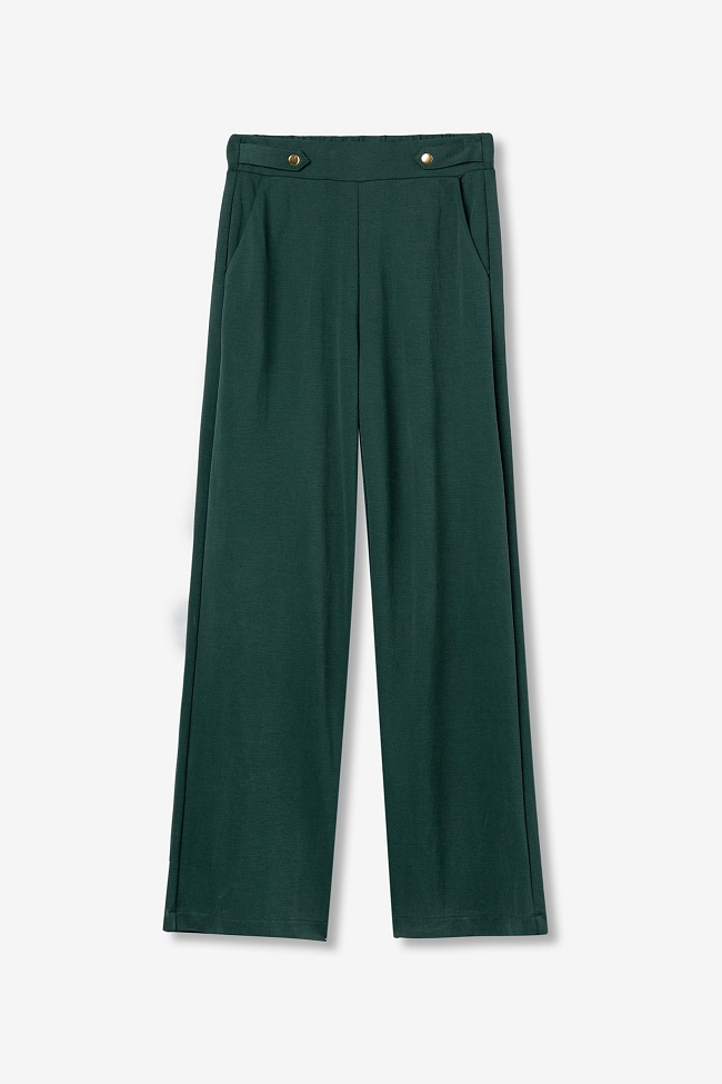 Pantalón ancho con cintura alta y botones joya en los laterales.
