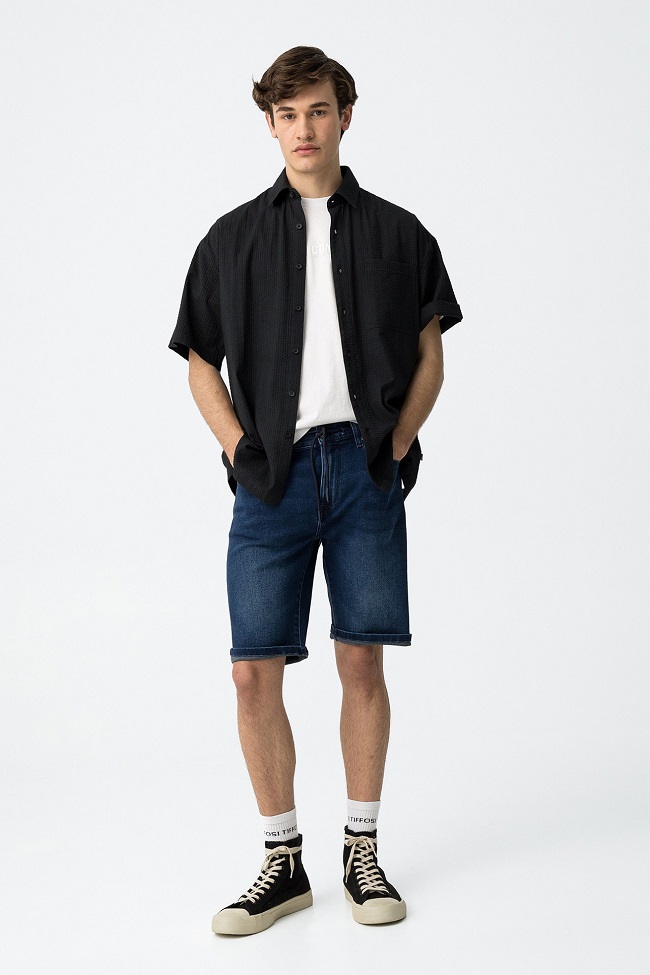 PANTALON CORTO INDIGO BOTON AZUL OSCURO