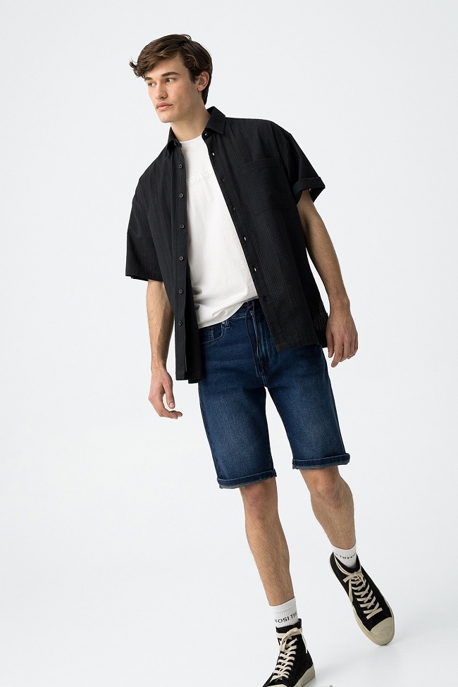 Bermuda slim fit con cierre frontal con cremallera y botón.