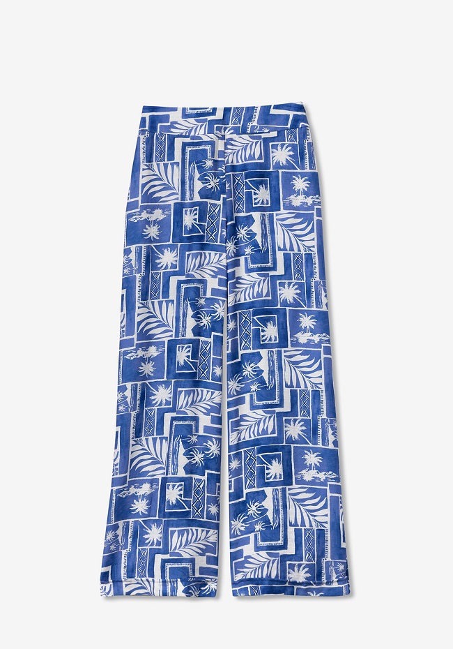 Pantalón fluido de talle alto estampado y pernera ancha.