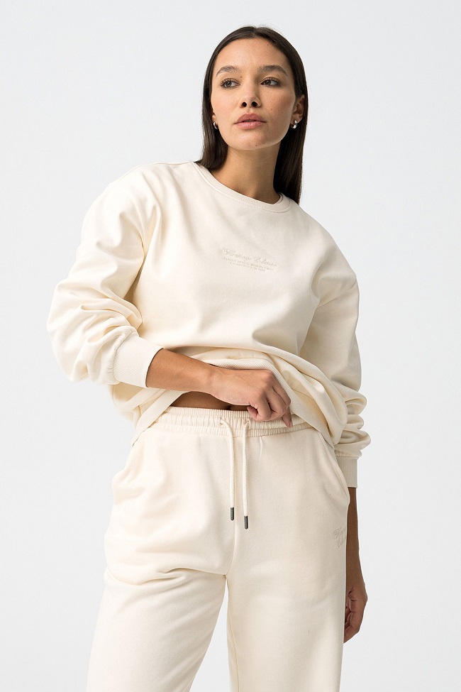 Sweatshirt regular fit de manga larga en tejido liso. Cuello redondo, puños y bajo con acabado en rib. Bordado frontal en relieve.