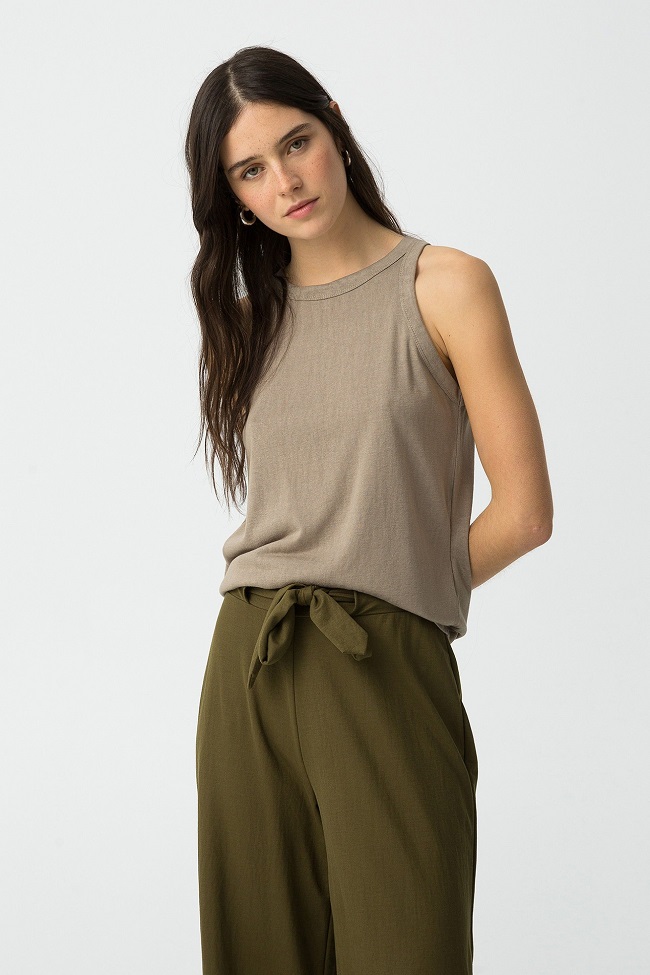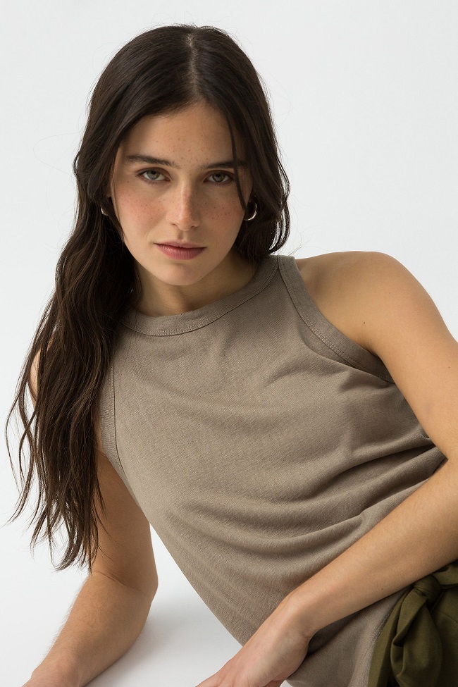 Camiseta de algodón, con escote redondo y sin mangas