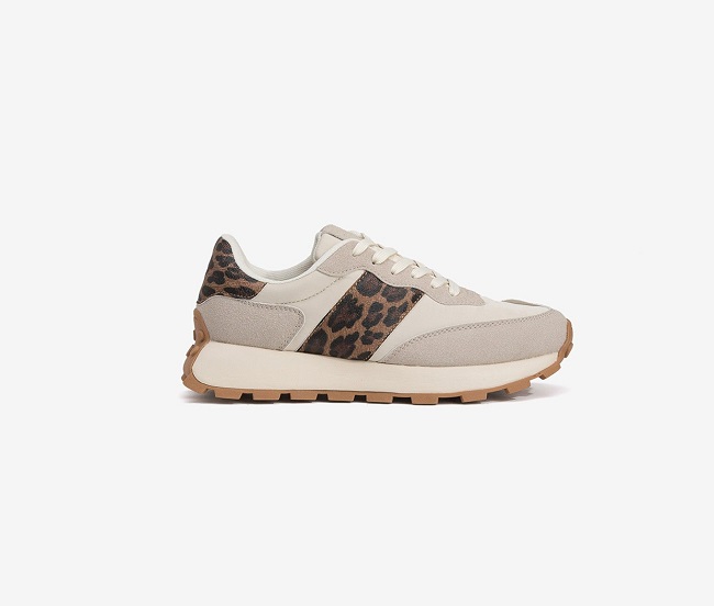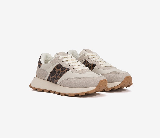 Zapatilla deportiva combinada con recortes en efecto ante y estampado animal.
